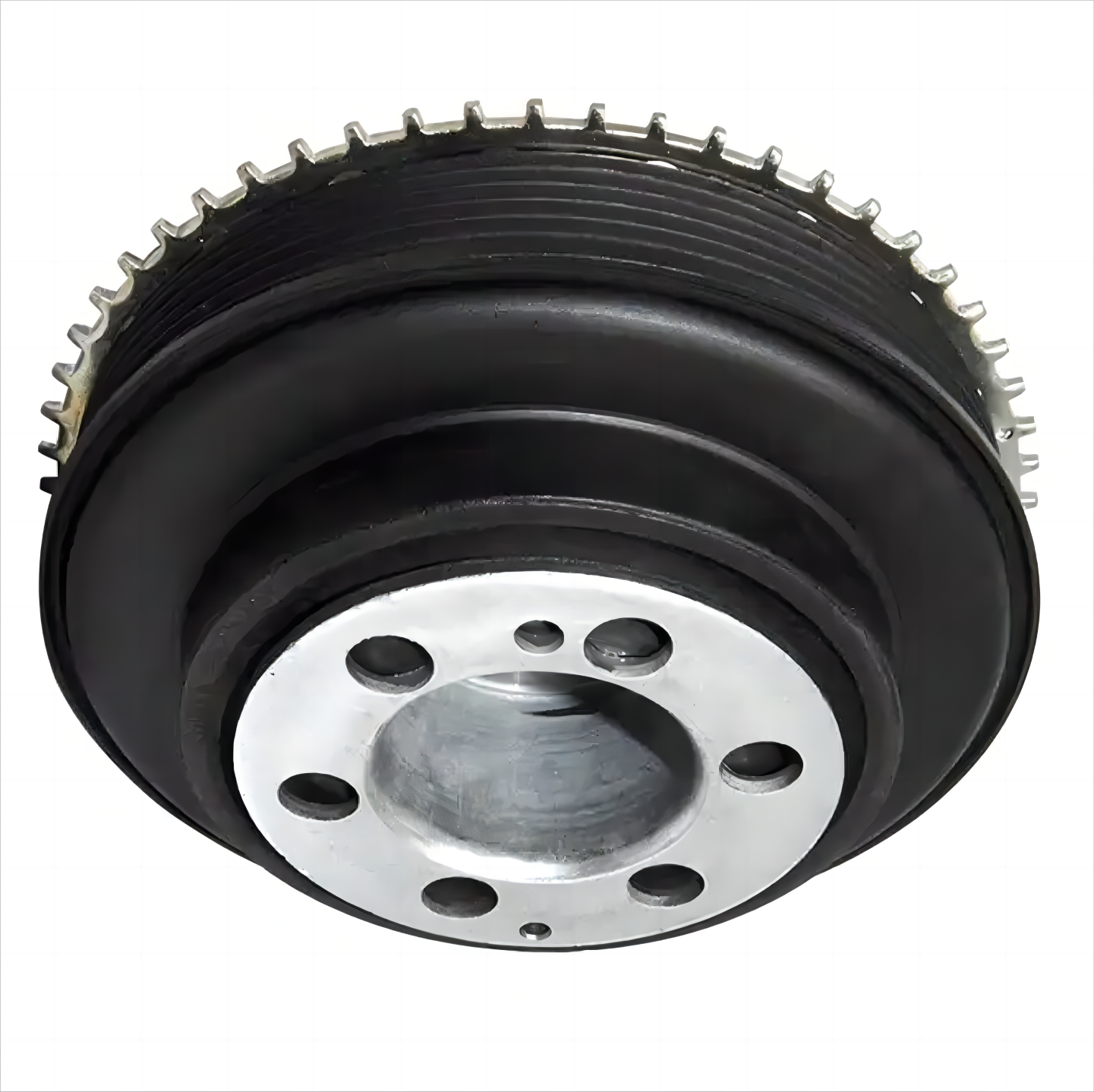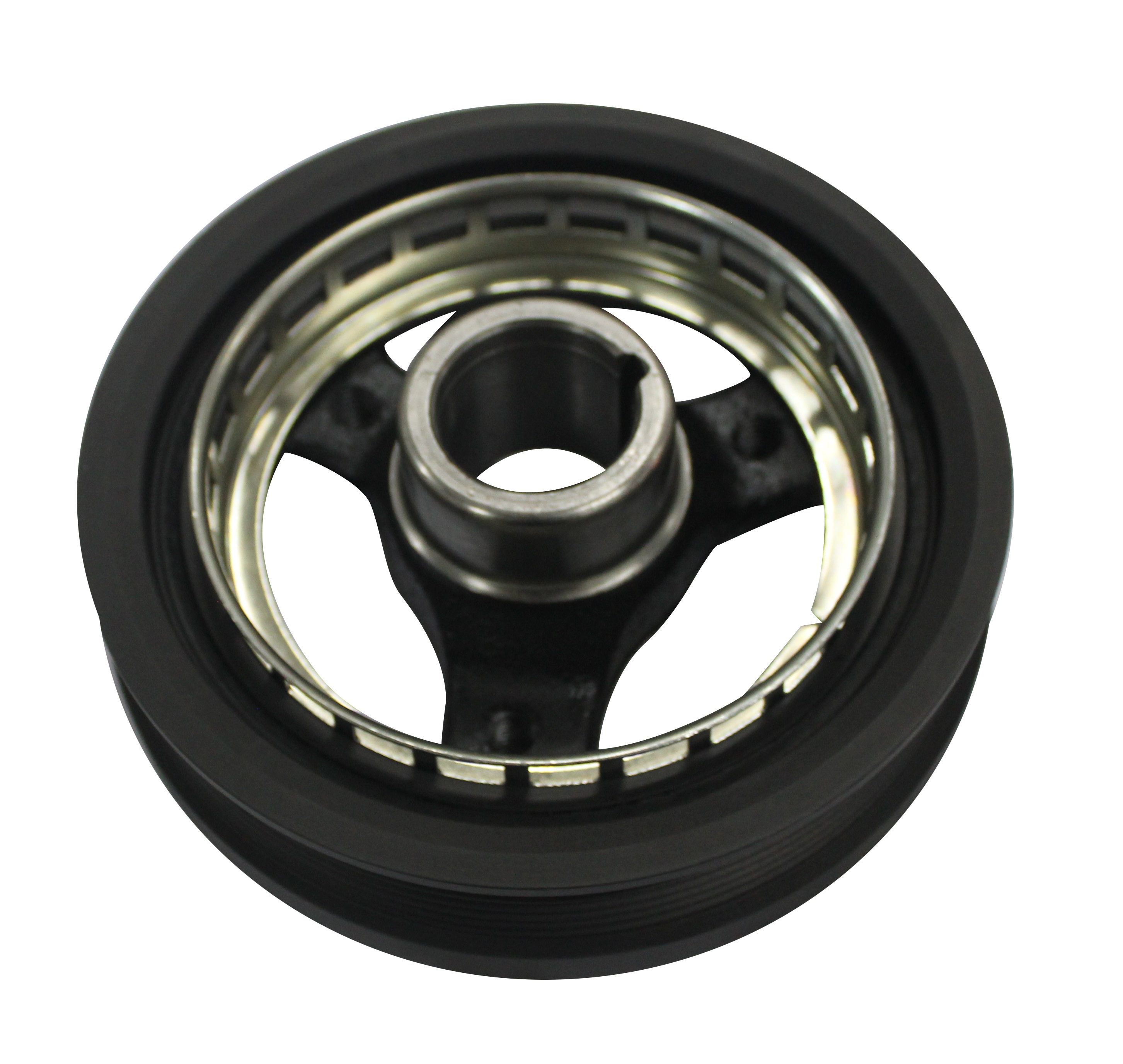 曲軸減震皮帶輪,是發動機前端附件系統的重要零件之一,分為橡膠減震皮帶輪、硅油扭轉減震皮帶輪及橡膠硅油復合型扭轉減震皮帶輪,基本結構一般由輪轂、外圈、橡膠組成,大多安裝于曲軸的前端,傳遞曲軸輸出的扭矩以驅動輪系附件。